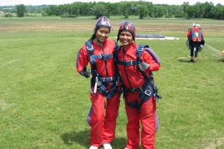 It was quite a long day filled with a bit of nerves, but mostly excitement. After sitting through a hilarious safety/training video that emphasized death as a possible outcome, we all signed our lives away and waited for our jumps. Before we knew it, we were all plunging to the earth from 13000 feet. Although it was a bit nerve-wracking, we all thought it was über awesome. Upon asking my mum if she was nervous, her response was “No, I’m excited!” Thanks to Jad for making her experience so amazing, and to J-rodd for capturing the jump beautifully on camera!