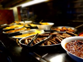 Last night I crashed before midnight. I was absolutely exhausted; my body felt broken in many places, and my foot was feeling the effects of a 10+ hour hike. After sleeping in a bit, I dragged myself out of bed and got ready to head for breakfast. All of our breakfasts are included, so we decided to make our way to the Bow Valley Grill in the hotel for their breakfast buffet. The selection of food was amazing. There was an omelette station with peppers, mushrooms, bacon, and many other possible ingredients; a fruit station; a section with different kinds of frittatas, hash browns, and sausages; oatmeal, cereals, yogurts, etc etc etc. The list really does go on. Dan and I feasted quite quickly while enjoying orange juice and coffee, and once finished, the waiter brought our bill. It was $68.21! We gasped. This was very different than the usual Starbucks breakfast sandwich and coffee that we would usually get. Thank goodness breakfast was included! The service was incredible and the food tasted great :).