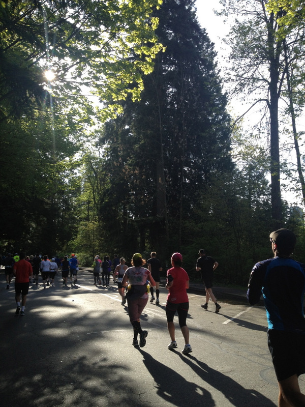 As we emerged from the train and headed toward Queen Elizabeth Park (the start of the race), we were greeted with the most amazing weather. A little chilly, yes, but definitely nothing to complain about, especially since we’d be warming up quite a bit once the race started. It was sunny, which was awesome, since I expected it to rain. It IS Vancouver after all. Everything was green; the air was crisp. I knew it was going to be a great day.