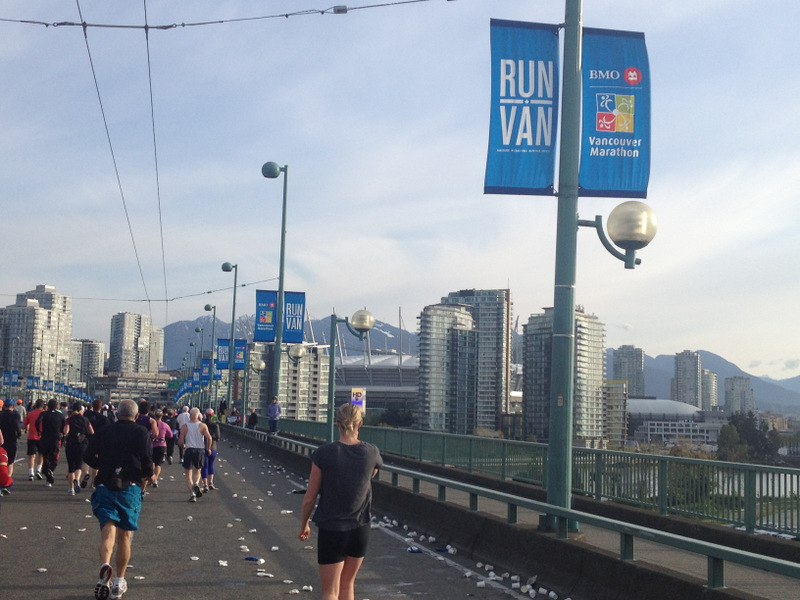 Passing an aid station on the Cambie street bridge