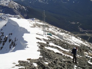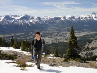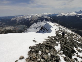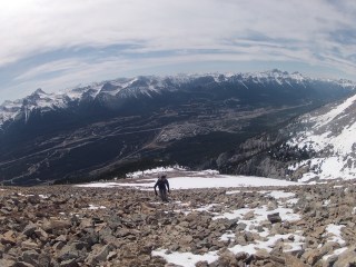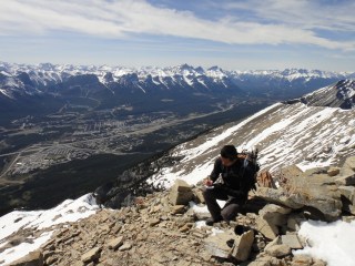 Things became a bit more complicated when we reached snow and had difficulty finding the trail, but we eventually figured things out. It was amazing to realize how deep the snow was in the mountains :S. Then we hit the scramble, which was quite intense due to even more snow. There were several times, for safety reasons, that we almost called it quits. But after much perseverance, we reached the summit. And, boy, were the views ever gorgeous. Throughout the entire ascent, Canmore sat in the distance below. We gradually passed Ha Ling’s elevation, and then East End of Rundle’s elevation, and countless other peaks. Snow-capped, majestic mountains surrounded us. At the top of Grotto, we found a canister (yippie!), which we gladly signed to celebrate our accomplishment. The wind was crazy at the top, so we didn’t stay long and quickly started down the mountain.