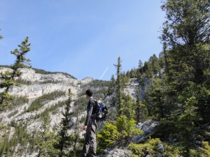 Dan and I learned lots about pikas, marmots, bighorn sheep and mountain goats. We sampled buffalo berries, which are a staple food for bears. Bears must not taste bitterness, because once the initial sweetness wore off, those berries were terribly bitter! Nathalie was great at explaining some of the history of Banff and Cascade Mountain. We powered onward. Our legs were tired, but we persevered, full of optimism.