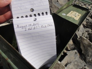 Once at the top, there are two stopping points. I ate my lunch at the first, then traversed the top for about 5 – 10 minutes before hitting the second where I found a mysterious box! Actually, it’s not that mysterious. It houses a pen and notepad for signatures. And sign that notepad I did. I actually think I may have been the first one to reach that point today. Exciting!